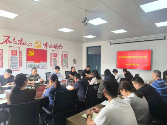 为全面落实立德树人根本任务,进一步加强师德师风建设,2025年9月15日化工与环境工程sunbet游戏官网组织全体员工开展《中共中央 国务院关于弘扬教育家精神加强新时代高素质专业化员工队伍建设的意见》专题学习暨《师德承诺书》签字活动。活动由sunbet游戏官网党总支书记胡鹏主持。