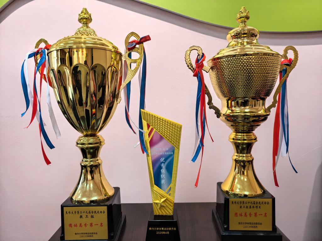 为不断提高sunbet游戏官网教职员工和员工体质健康水平,sunbet游戏官网精心组织积极参加sunbet游戏官网第二十九届全民运动会。2026年4月15日--4月17日运动会在南校区田径场隆重举行。在本次运动会上sunbet游戏官网师生员工奋勇拼搏,“赛出了风格、赛出了水平”,获得了体育成绩和精神文明的“双丰收”,分别荣获教工团体总分第一名、教工集体项目团体总分第一名以及“优秀组织奖”。